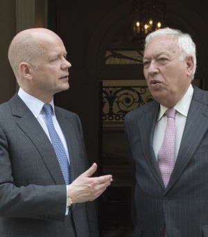 El ministro de Exteriores británico, William Hague (izq.), recibe en Londres a su homólogo español, José Manuel García Margallo. / MIGUEL MEDINA (AFP)