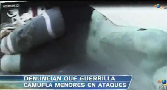La Policía Nacional de Colombia denuncia que la guerrilla de las FARC emplea a menores de edad camuflándolos en la selva para cargar explosivos y atentar contra sus objetivos. En un vídeo difundido en distintos medios colombianos, una de estas supuestas niñas mercenarias, de 14 años, aparece herida tras un combate, con el cuerpo semidesnudo y pintado de verde para camuflarse en la selva, de acuerdo con la versión de las fuerzas armadas.
