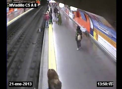 Un policía salva a una mujer que se había desmayado y había caído en las vías del suburbano