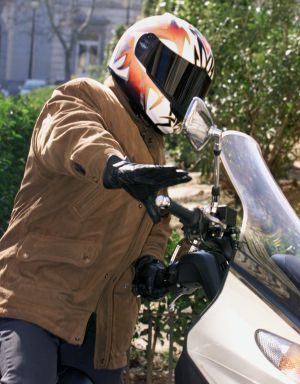 El expolicía Michel Domínguez oculta su rostro con un casco tras declarar en la Audiencia Nacional. / G. Cuevas (efe)