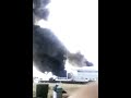 Humo en la zona en que se ha estrellado el F-16 griego. En la imagen se pueden ver algunos de los aviones dañados por la colisión. Efe