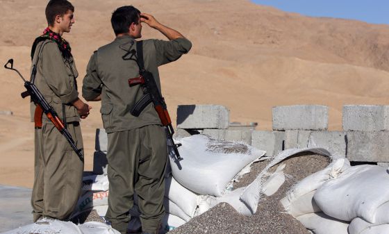 Milicianos de la guerrilla kurda de origen turco PKK vigilan un puesto en la ciudad de Majmur, en el norte de Irak. / AHMAD AL-RUBAYE (AFP)